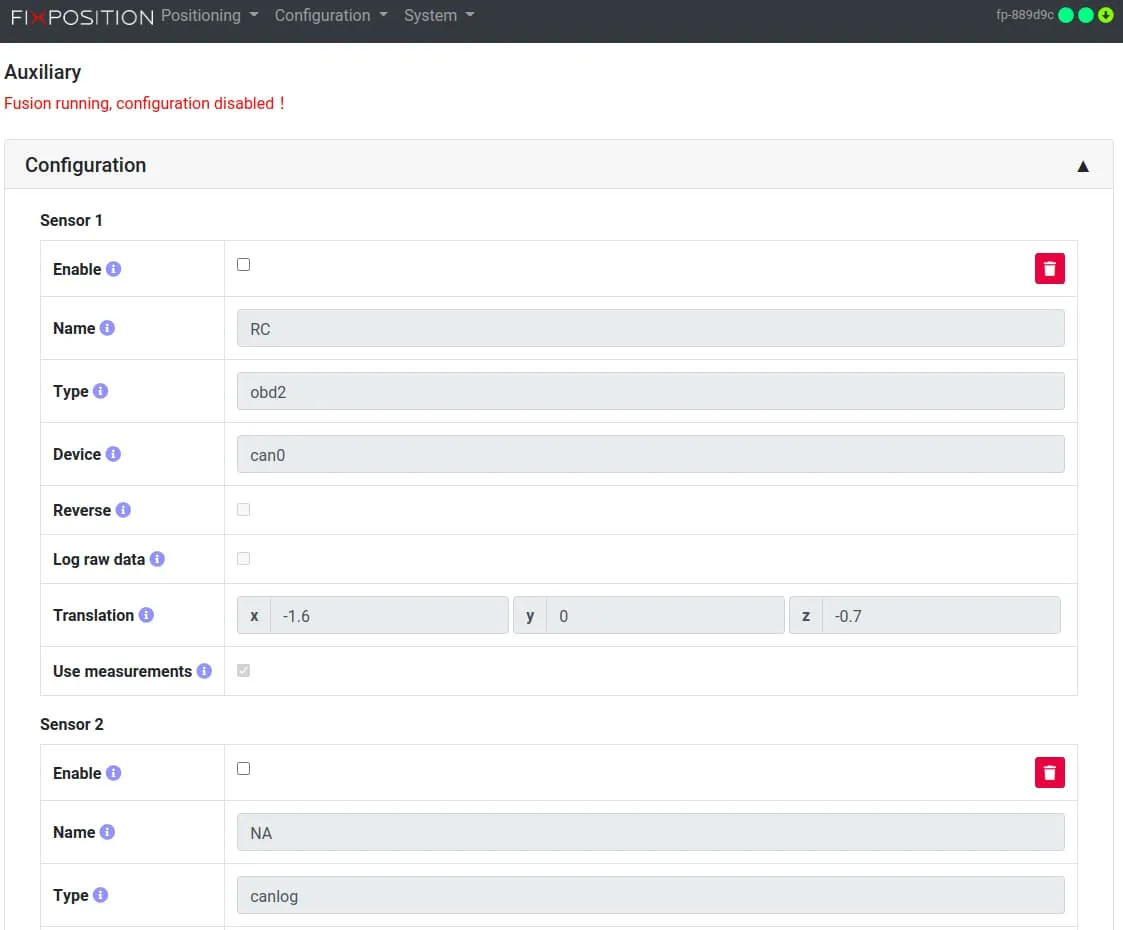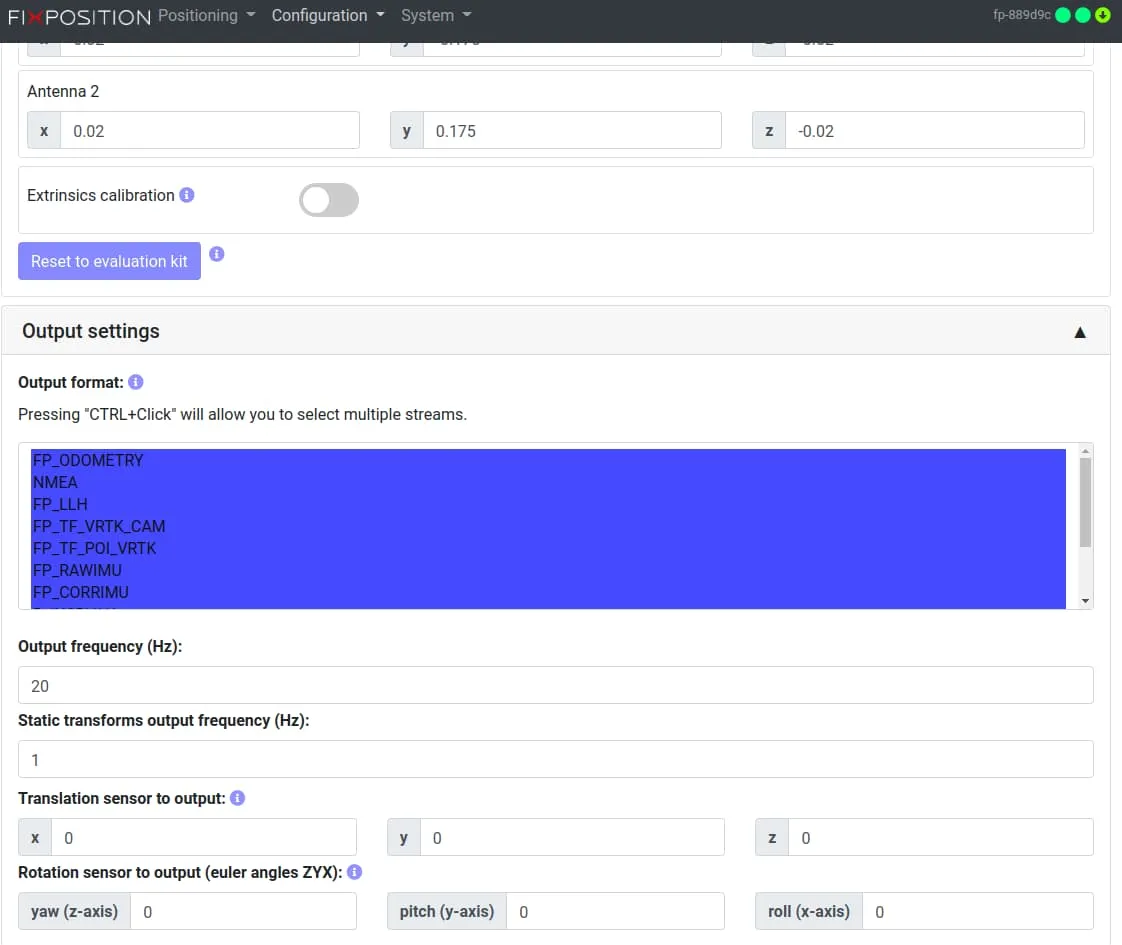 Fixposition Configuration