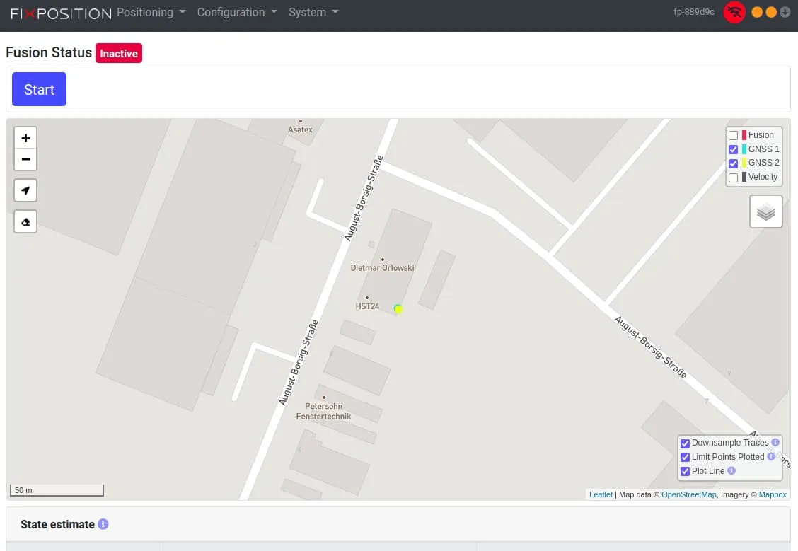 Once connected to the Fixposition as described in Fixposition Connection. Then you can configure your device via the web interface.