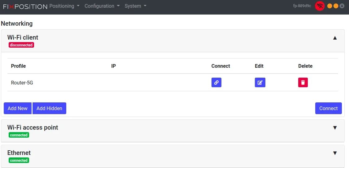 The Fixposition can be connected to the a local router, by clicking