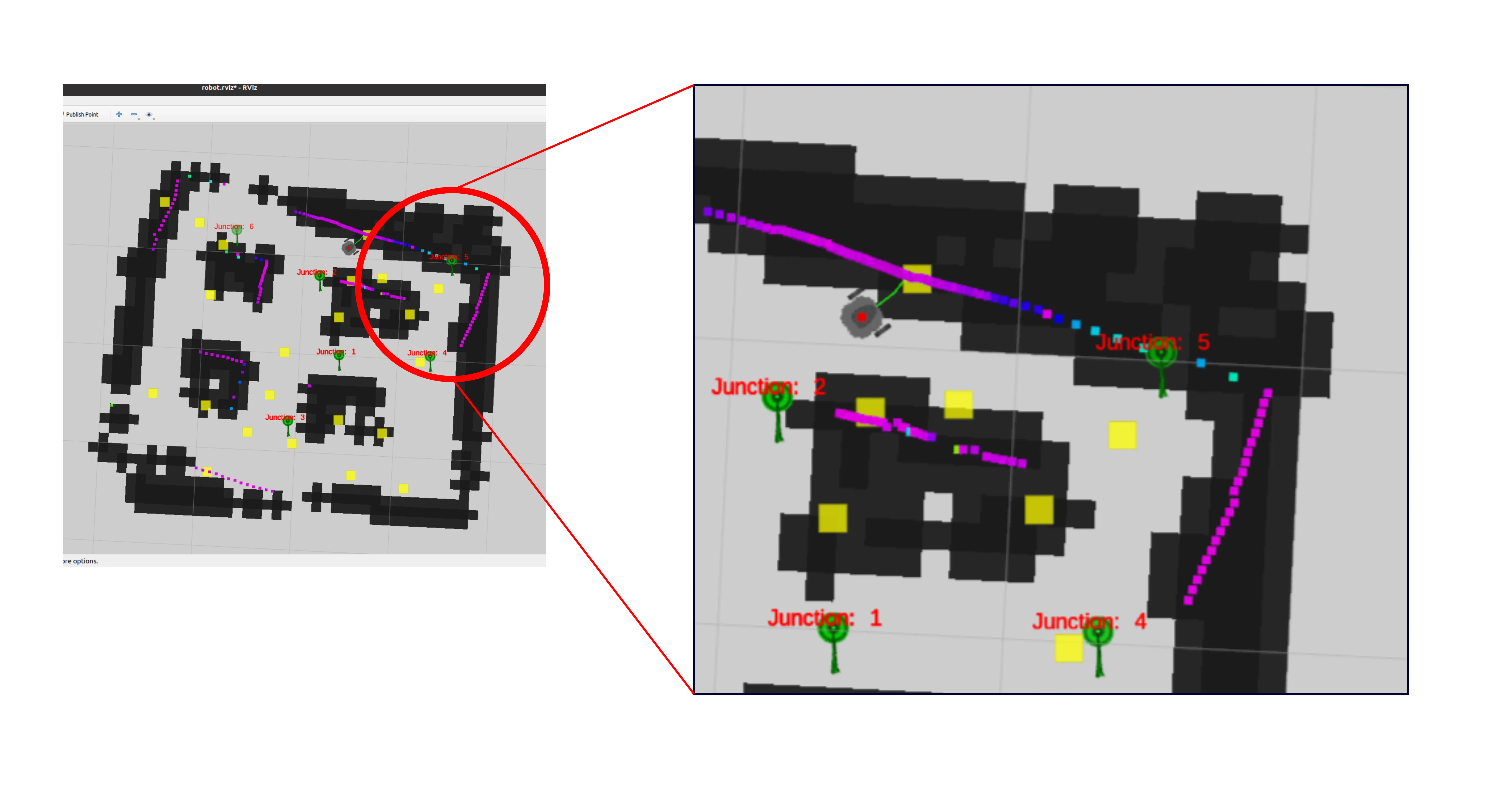 Finally, the proposed strategy is effective in junction detection in laboratory testing. However, orientation continues to be a determining factor, which might result in false positives. A thorough awareness of the physical environment is produced by the prolonged exploring period, which also yields precise maps. The proposed-developed technique works well and consistently in a real-world environment, even with sporadic false positives.