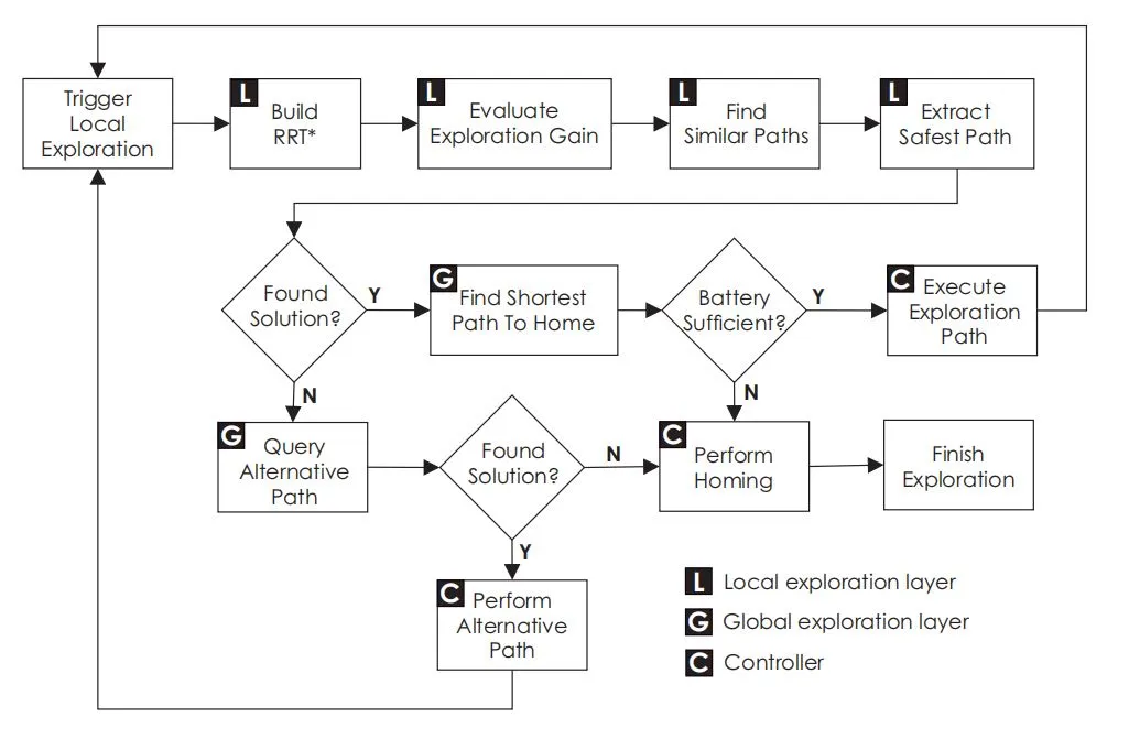 Similarly, Dang et al.[1] provided an in-depth performance evaluation of the “Explore Locally, Plan Globally” framework. Through a series of simulations and field experiments, the framework’s efficacy in combining local perception and global planning was highlighted. The results emphasized how the framework’s utilization of local mapping improved the quality of global path planning decisions, leading to more effective exploration and comprehensive map generation.