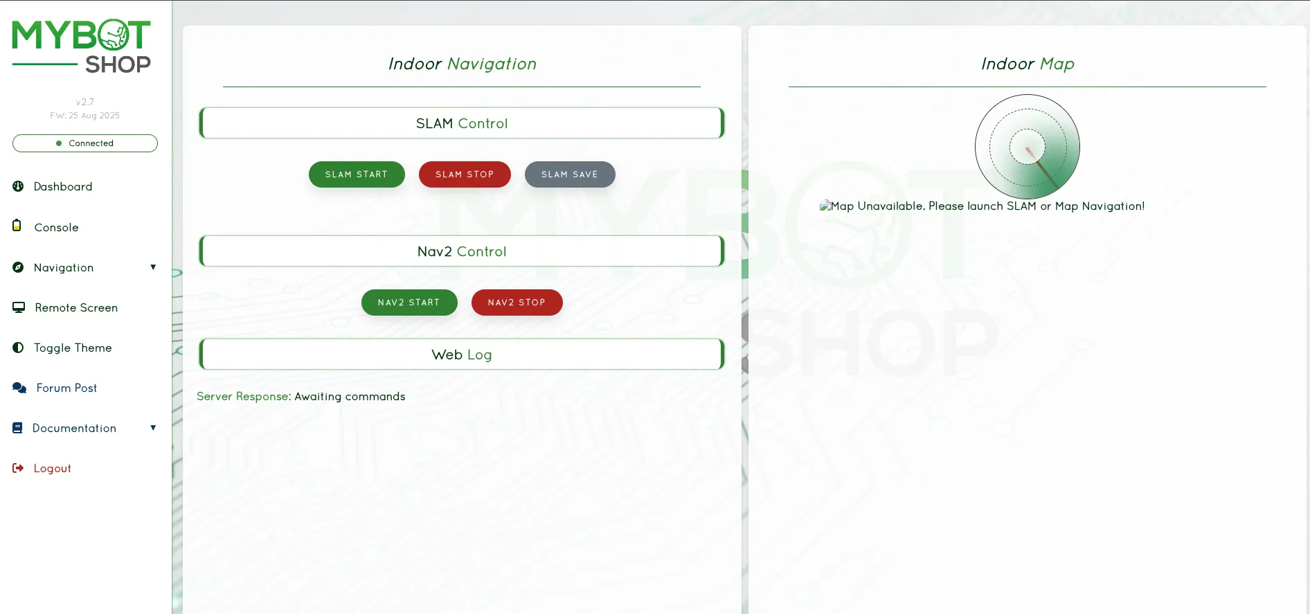 The console provides robot control features: